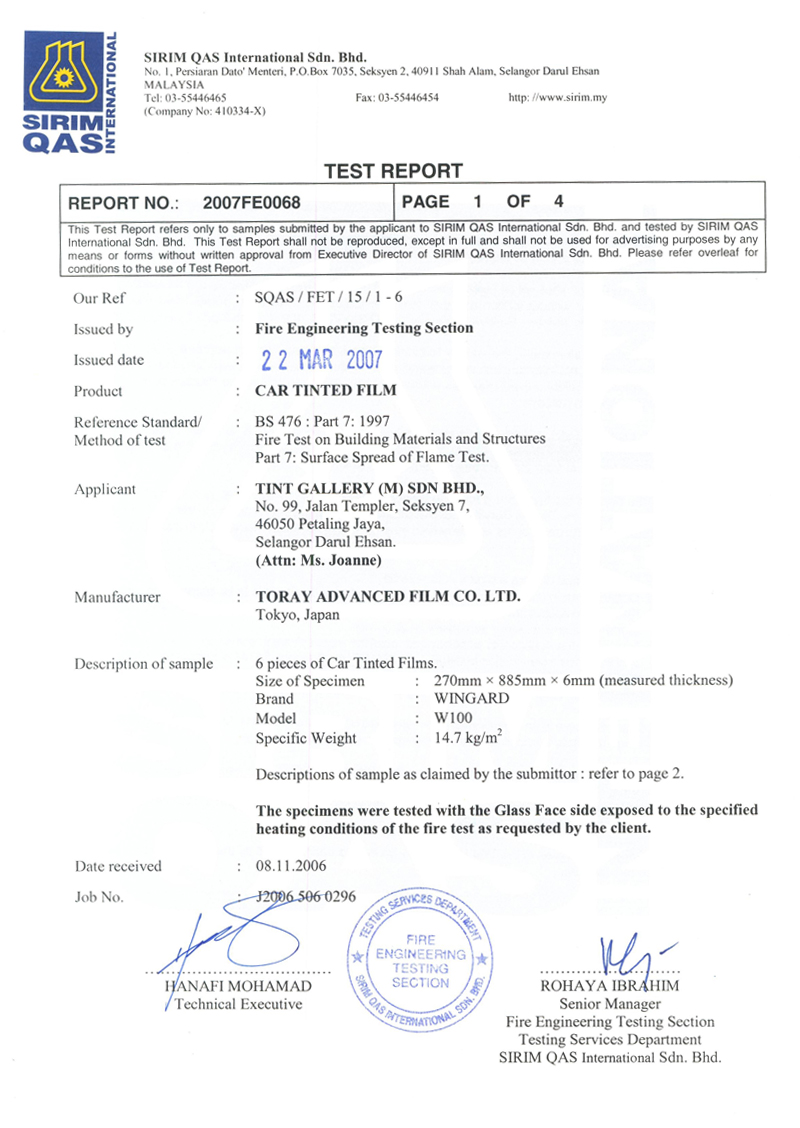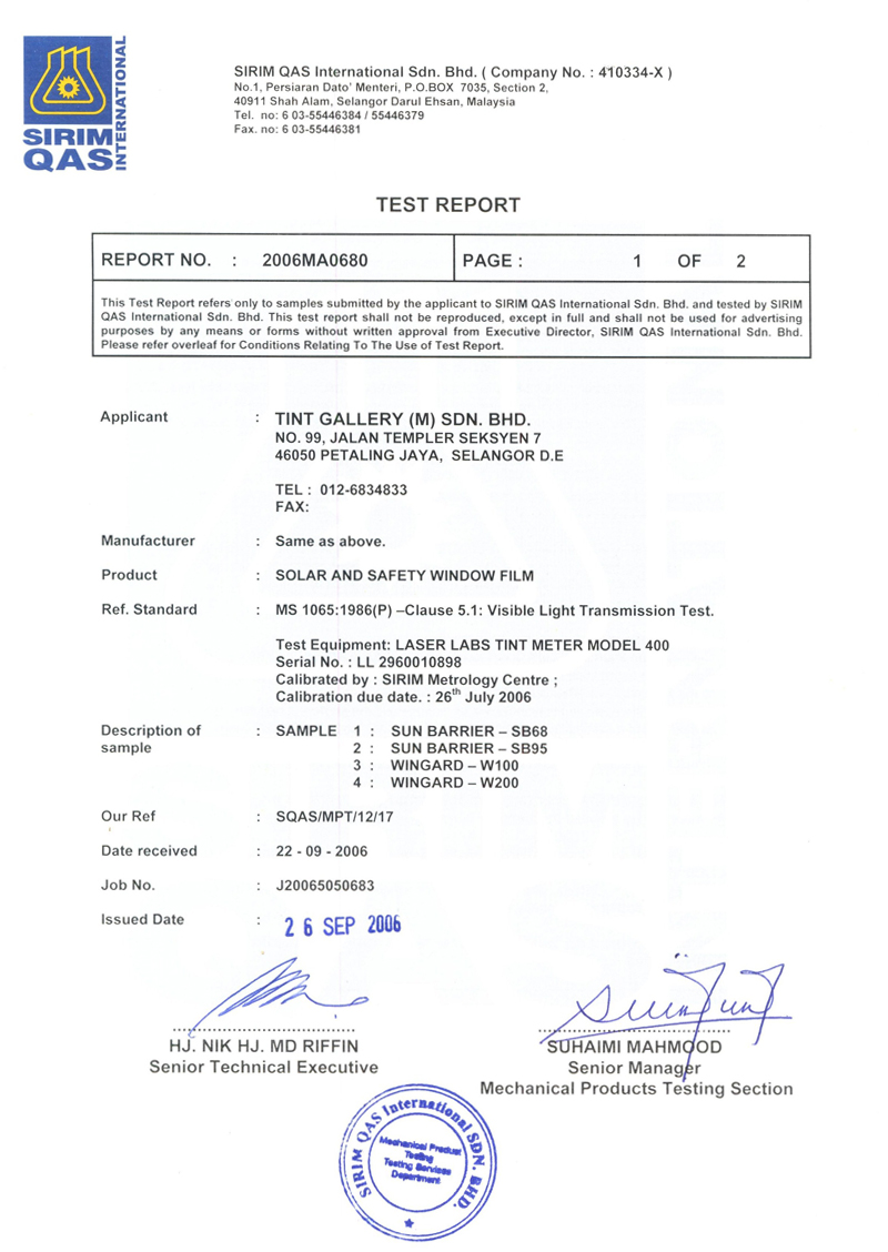 WinGard has one of the longest warranty period in the window film industry. This reflects the quality and durability of WinGard. After going through extensive developments and tests, WinGard has proven to champion consistently in its category of window security films.